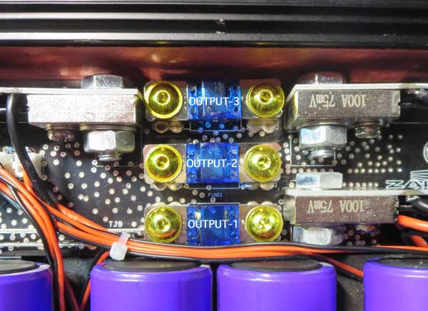 左:電源出力端子-2(最大0ゲージ) 右:電源出力端子-1(最大0ゲージ)